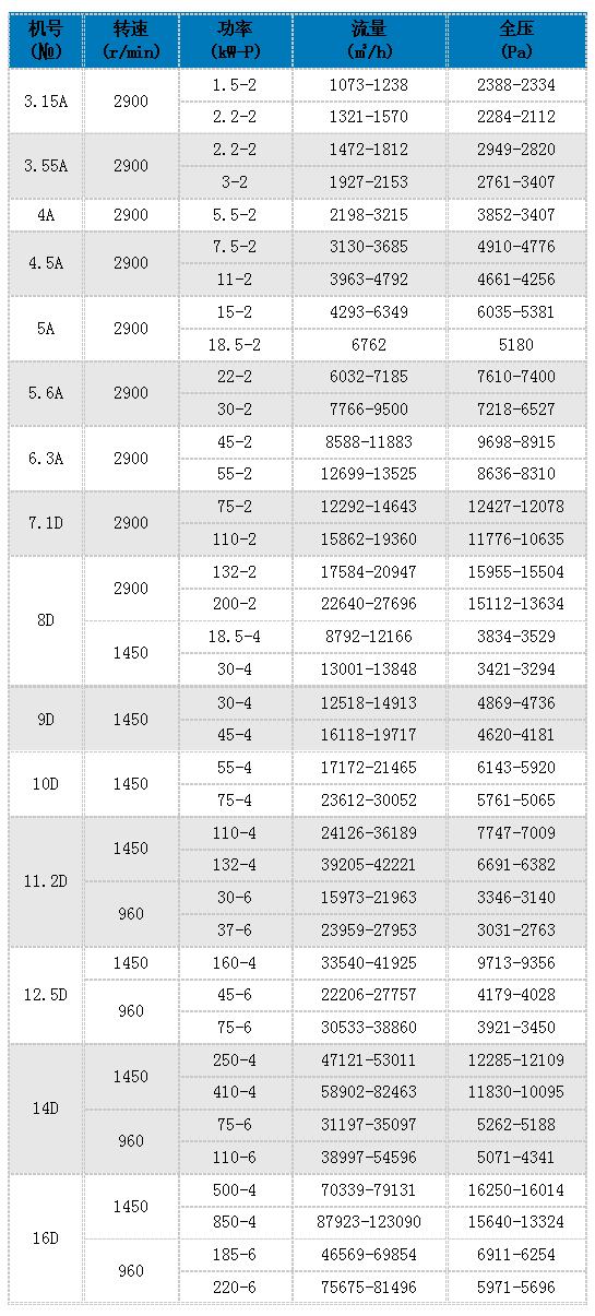 产品简介:此类风机一般用于锻冶炉及高压强制通风,并广泛用于物料输送,可适用于输送空气及无腐蚀性、不自燃、不含粘性物质的气体